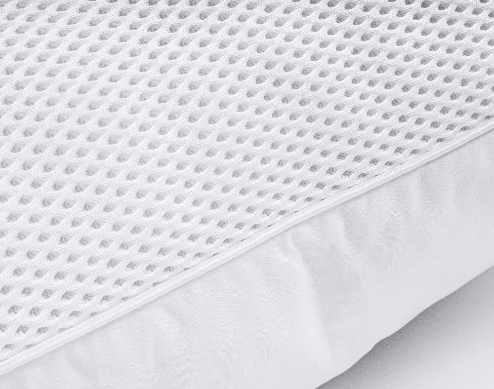 Dėl unikalios 4D ventiliacijos sistemos pagalvė turi 3D tinklelio (mesh) juostą aplink visą perimetrą, todėl oras cirkuliuoja laisvai, o pagalvė išlieka vėsi ir sausa net vasarą.