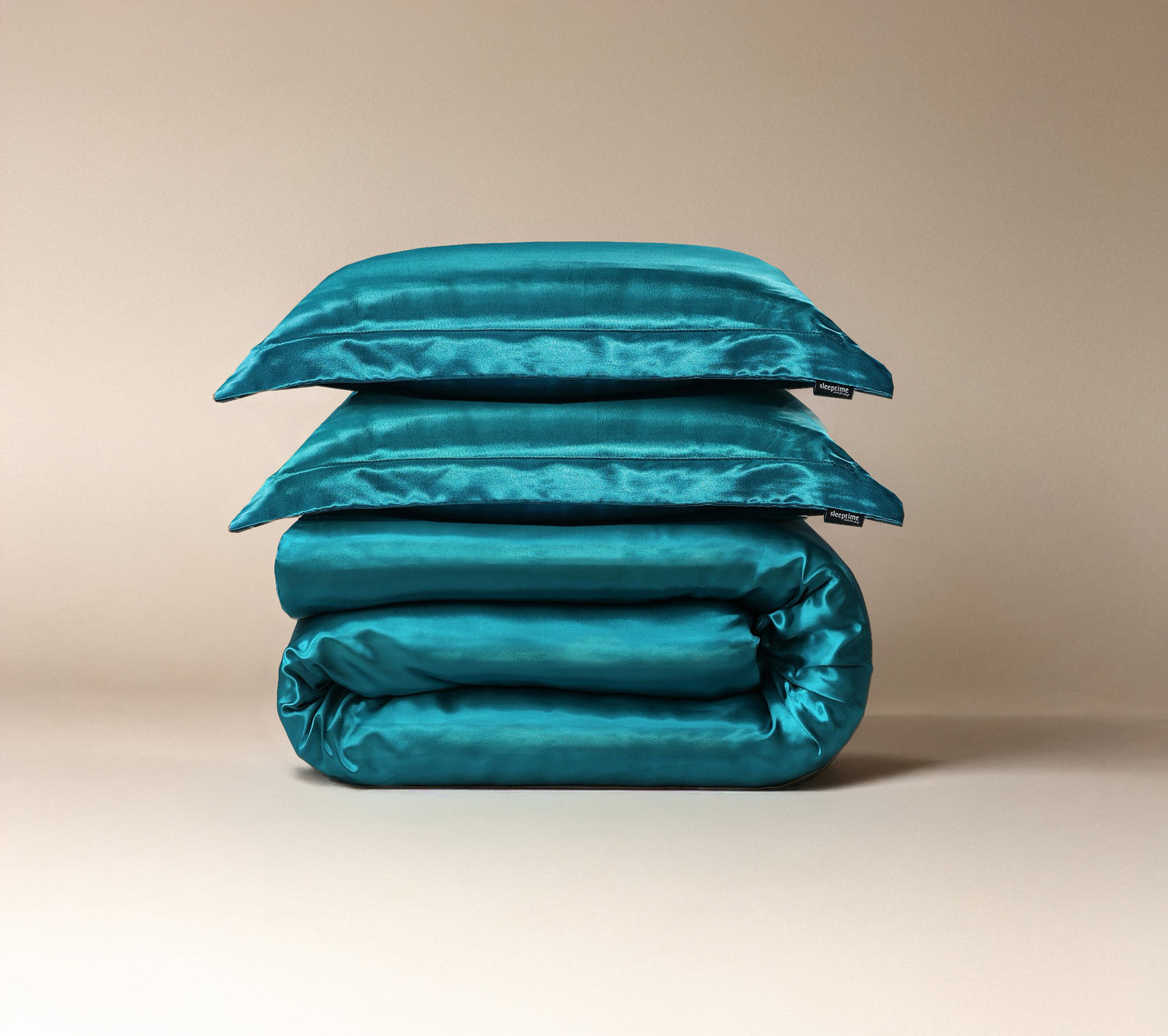 Ši elektro melsvos („petrol“) spalvos patalynė pagaminta iš 100 % „Gloss Satin“ – švelnaus, blizgaus ir glotnaus audinio, kuris primena tikrą šilką.