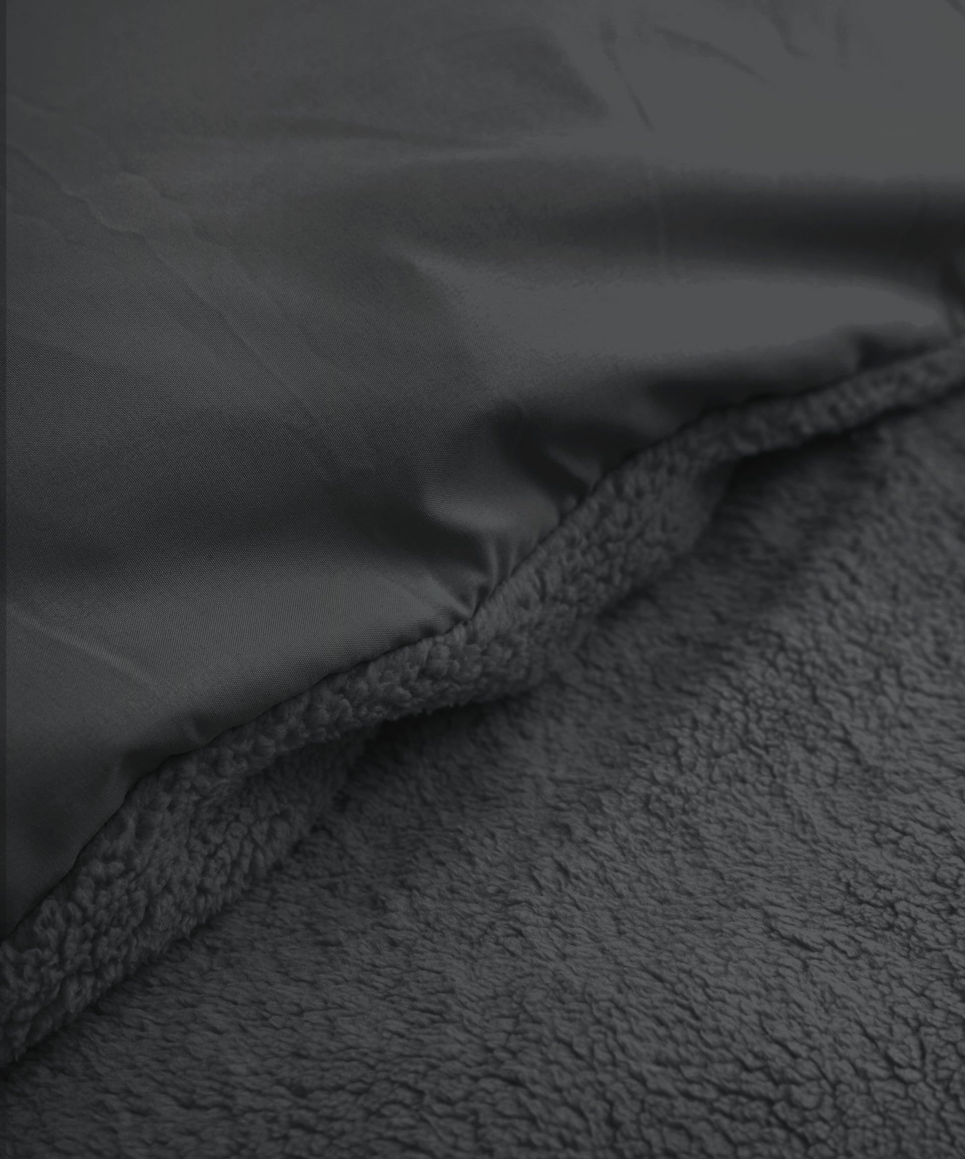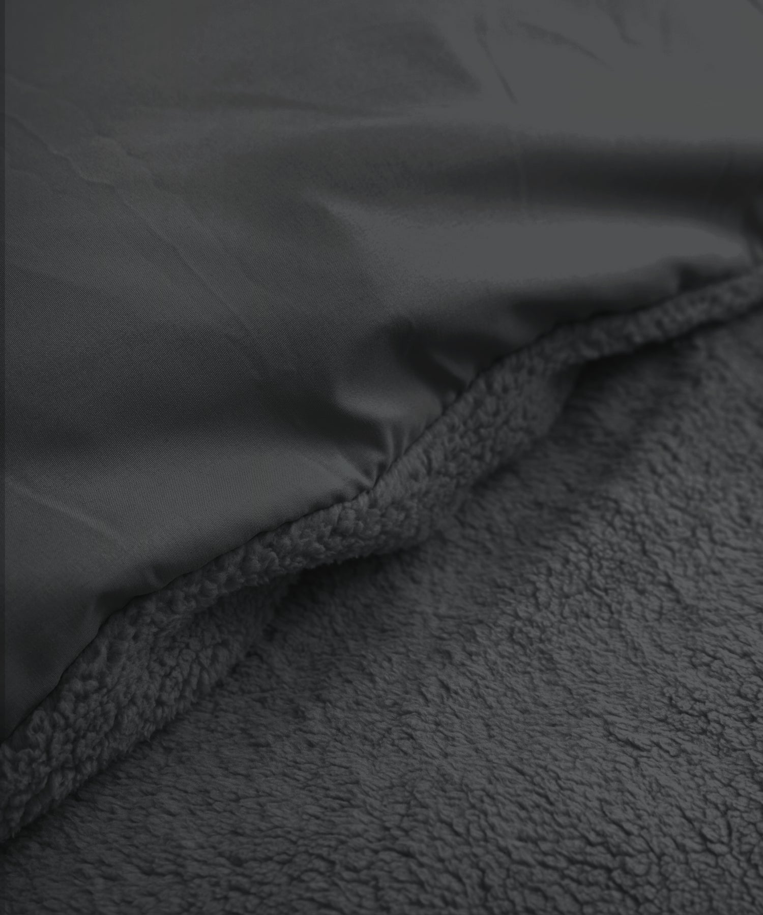 Ši antracito spalvos pliušinė patalynė pagaminta iš minkšto „Teddy“ fliso viršaus ir mikropluošto pagrindo, todėl suteikia ypatingą komfortą šaltesnėmis naktimis.