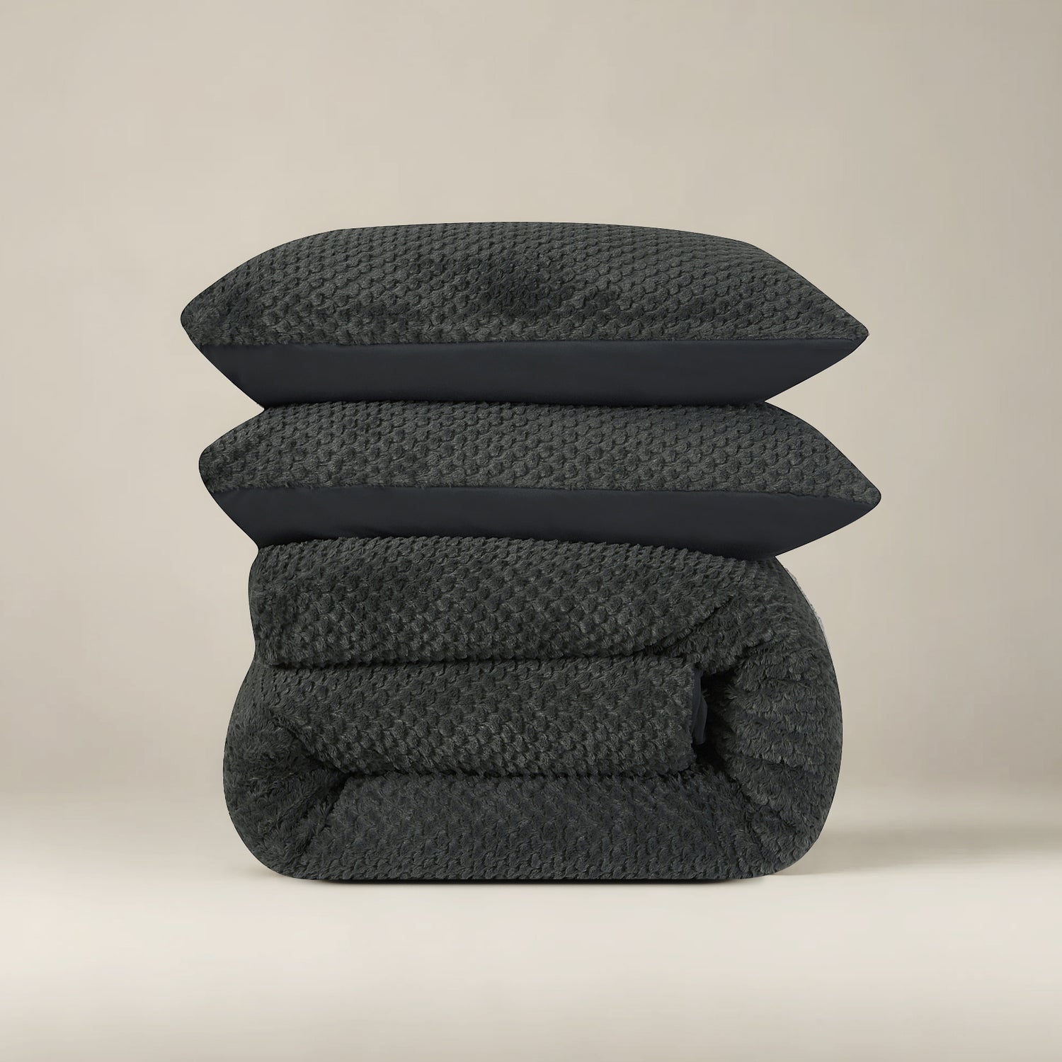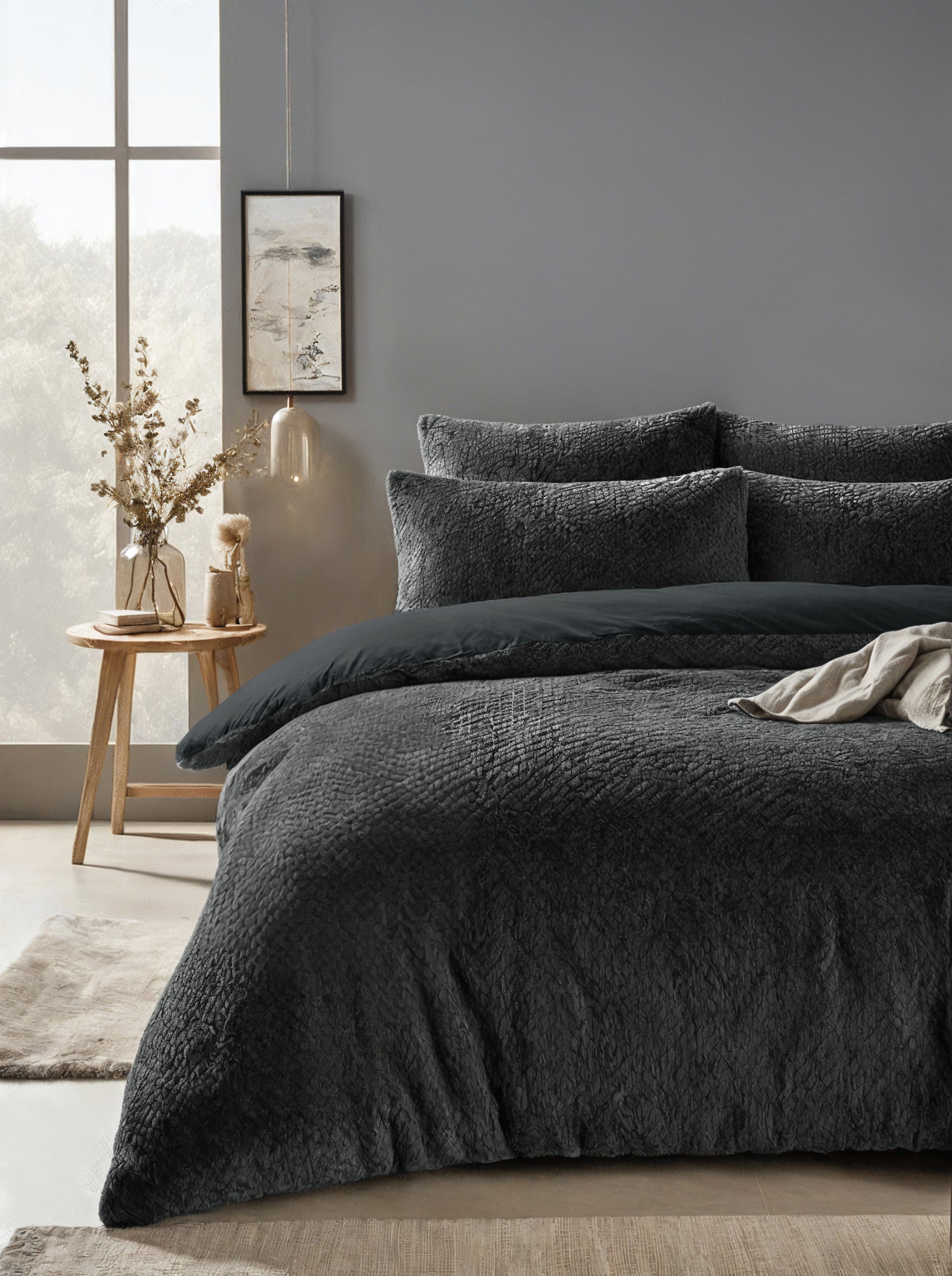 Antracito spalvos pliušinės patalynės komplektas Teddy