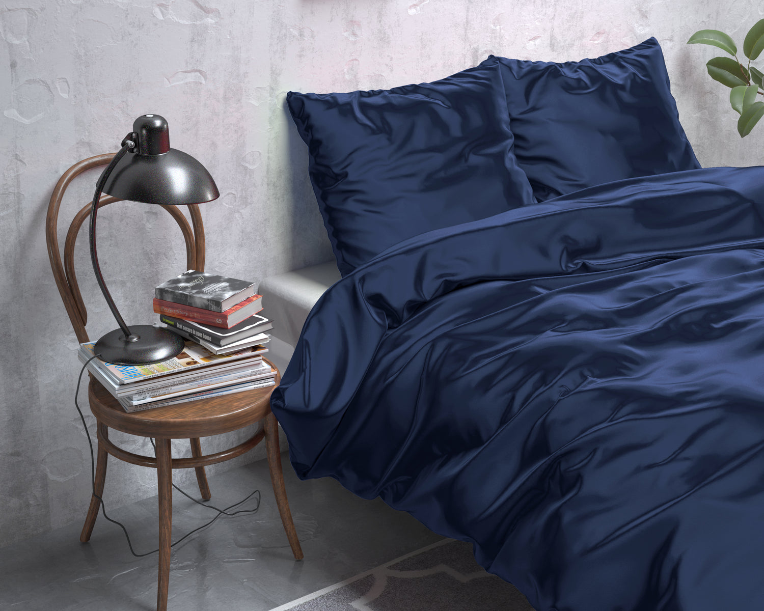 Tamsiai mėlynas dirbtinio šilko patalynės komplektas - Beauty Skin Care