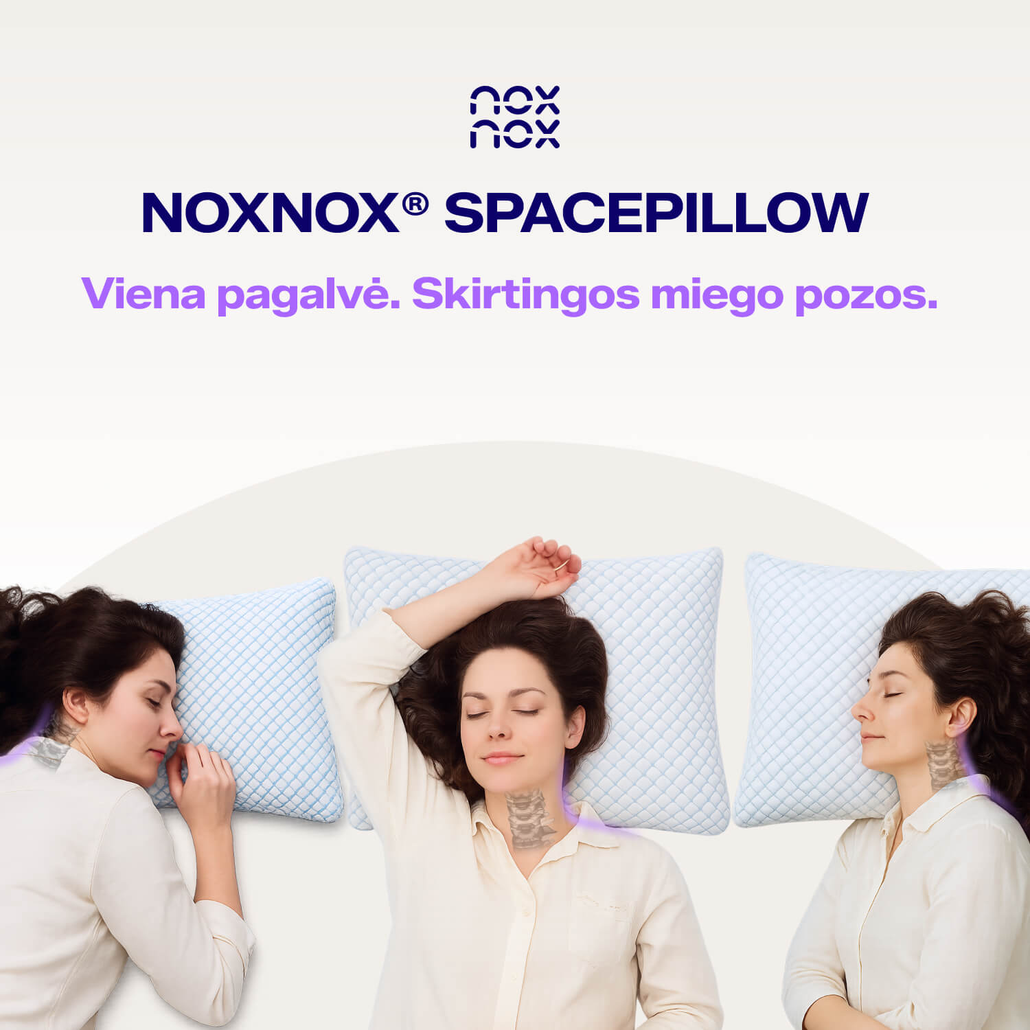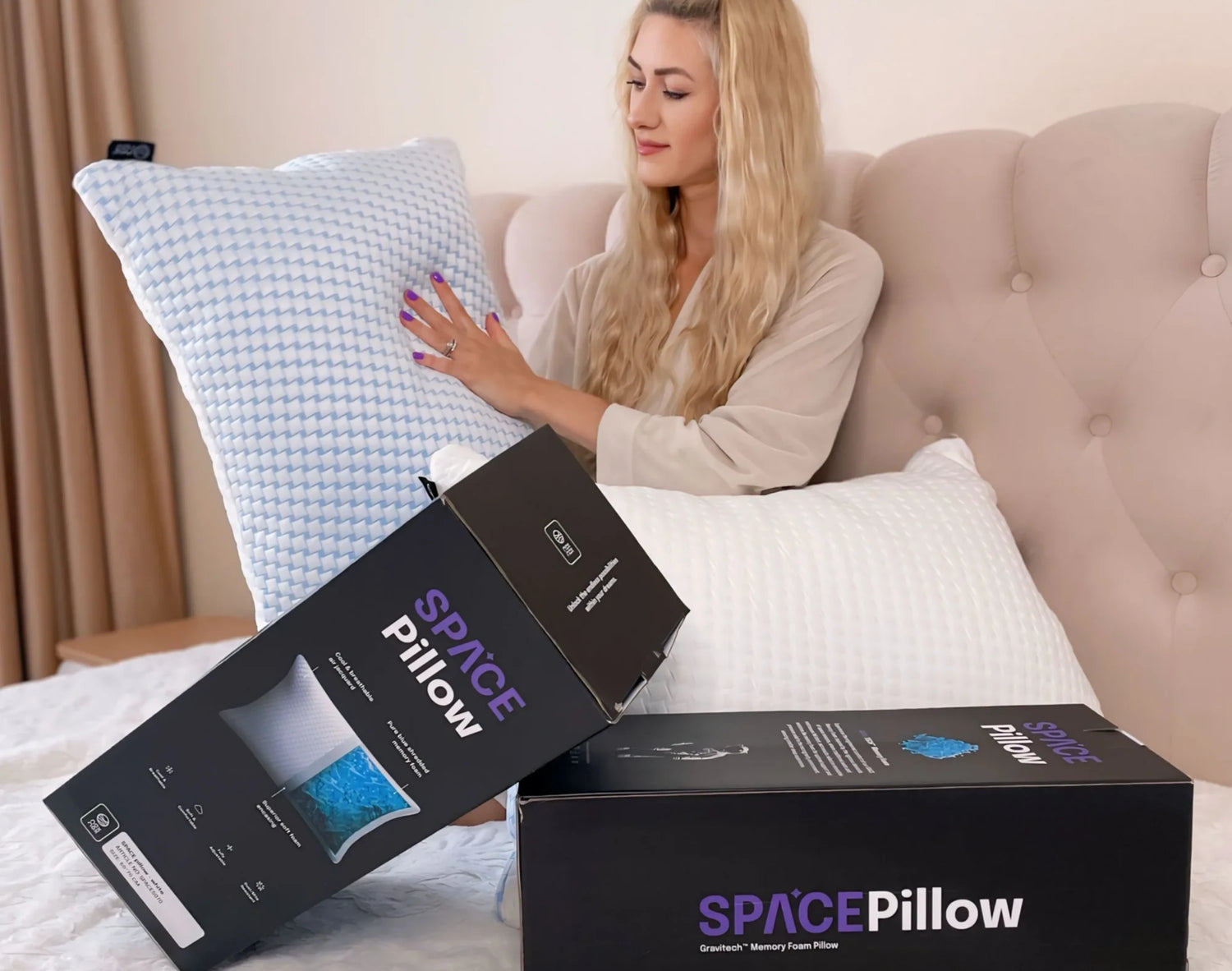 NOXNOX® Space Pillow pagalvė, prisitaikanti prie jūsų unikalių miego poreikių. Turėdami NOXNOX® Space Pillow pagalvę jūs jau turite savo tobulą pagalvę… ir užtrunka vos akimirką, kad ji taptų aukštesnė, žemesnė, minkštesnė ar kietesnė.