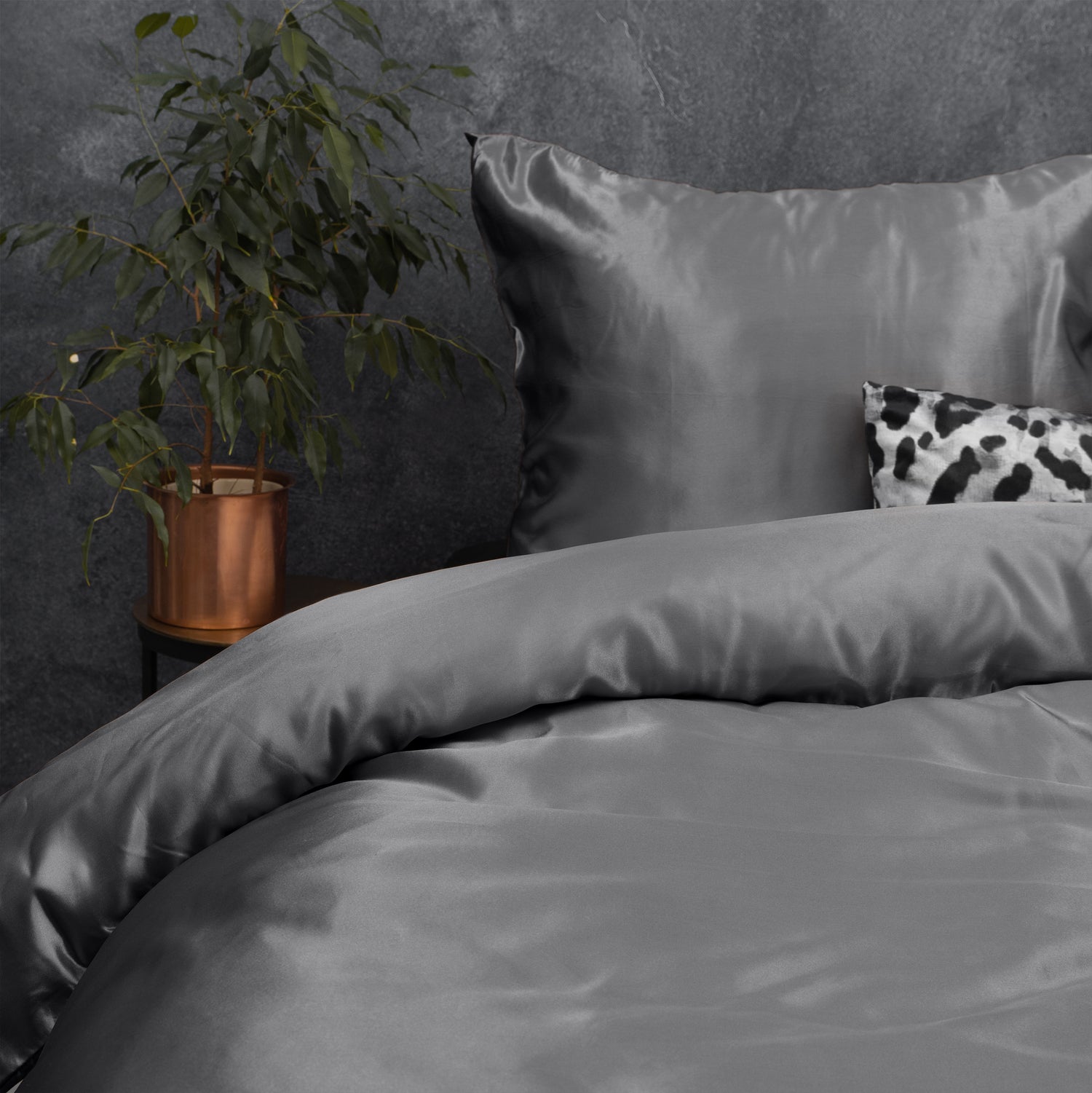 Šis antracito spalvos patalynės komplektas pagamintas iš 100 % „Micropercal Satin“ – tai itin švelnus, glotnus ir kvėpuojantis audinys, kuris maloniai priglunda prie kūno ir primena tikro šilko pojūtį.